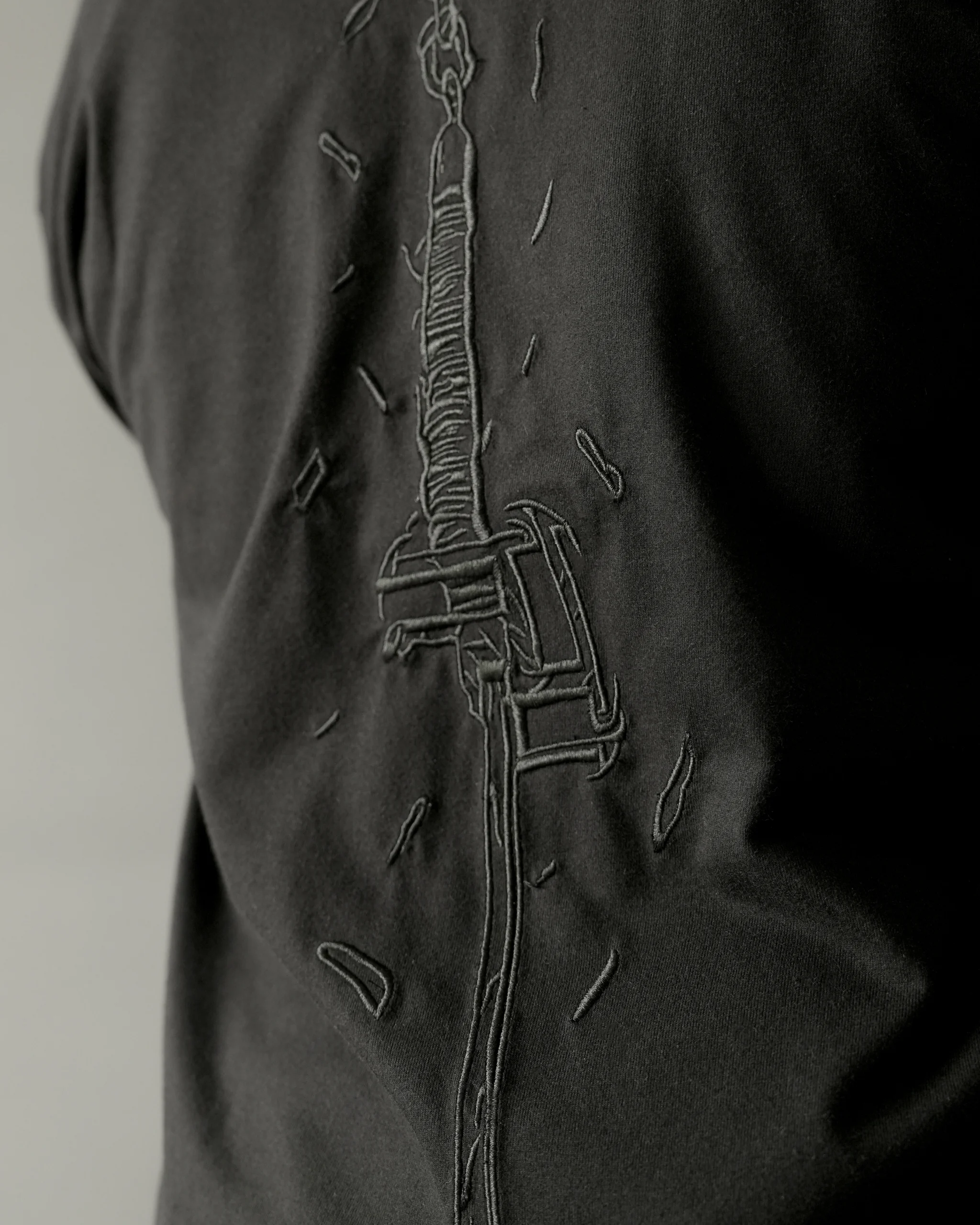 one of the two sides of your favorite substitute shinigami, broken zangetsu and the shinigami badge embroidered on the back and rib